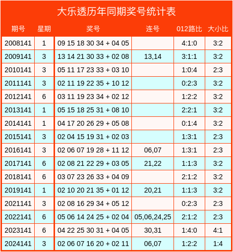 大乐透积年同时数据统计表
